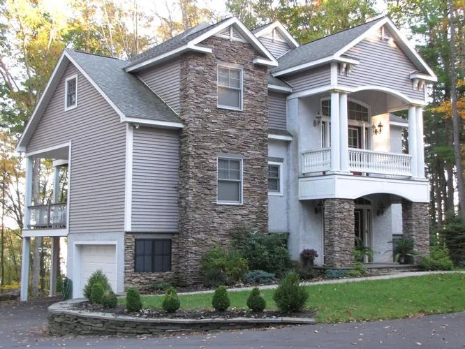 Spectacular custom built contemporary style home on Lake Wallenpaupack. Home features cathedral ceilings, upscale kitchen, hardwood floors, custom moldings and so much more! 4 bedrooms, 3 baths.
