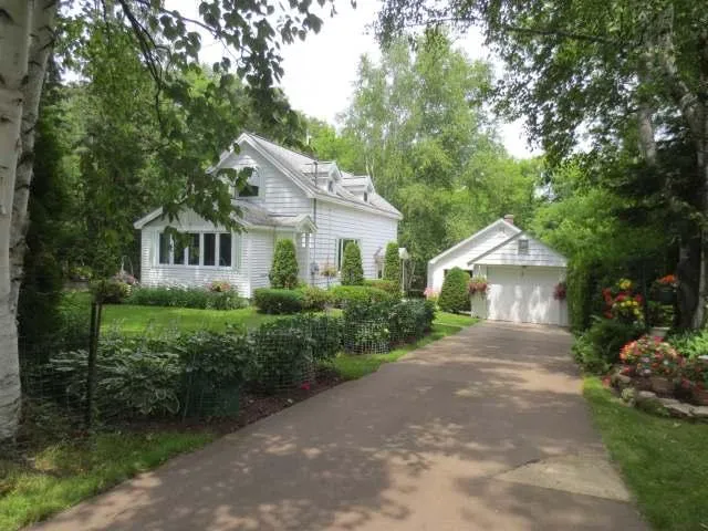Luther Burbank would have loved the virtual rainbow of colorful plantings in the botanical wonderland surrounding this 1.5 story home. Tucked away is this secret garden where every window in the home is a frame to the natural beauty of blooms, flowers and flourishing greenery. A greenhouse sits quaint along the garden path bordered by ferns and blooming perennials. Features of this proper residence include a front room with many windows, tongue and groove walls with pine beams and mahogany ceiling panels, spacious living room, dining room, large kitchen with pantry, dining area with windows that bring in the natural light, entrance with built ins and a full bathroom complete the main floor. The upper level features two bedrooms. A family room, cold storage room, full bath and laundry area complete the basement. There is detached extra deep garage/shed and an additional lot included in th...