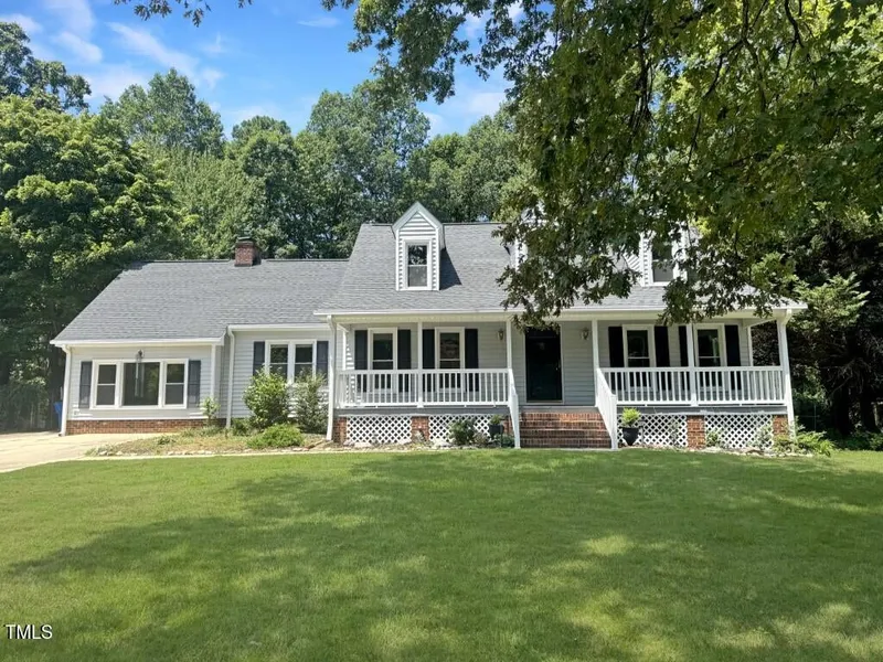 Tucked away on a sprawling 0.75-acre wooded lot in a prime North Raleigh location just minutes from I-540, this spacious home offers both privacy and convenience! The versatile floor plan features a first-floor guest or in-law suite, ideal for multigenerational living or visitors. Enjoy natural light year-round in the huge sunroom, complete with a vaulted ceiling, tile flooring, arched transoms, and double French doors that open to a large deck and patio overlooking the serene, private backyard. The kitchen features painted cabinets, granite countertops, tile floors, a stainless double sink with a window view, and a breakfast nook with a triple bay window. A separate dining room with hardwood floors provides the perfect space for formal meals and gatherings. Upstairs, the expansive primary suite includes a walk-in closet and a private bath with a walk-in shower. The cozy family room offe...