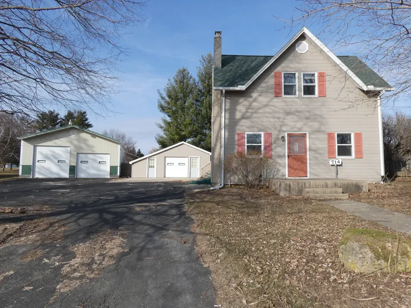 The garages and land alone are worth the asking price here. Appealing and updated exterior for this home, garage and shop all situated on two parcels totaling 0.76 acres. Home features large living room, dining room, main floor laundry, 1.5 baths, plus 3 bedrooms with ample closet space. Enjoy the fenced yard space from the large screened porch/deck area. 26x28 garage has a shop area with gas heater, 28x28 shop/garage with large doors plus an 8x10 yard shed. Home has plumbing freeze damage and will likely not qualify for many loan products. Regardless, a great value for capable buyer to fix up. Call today.