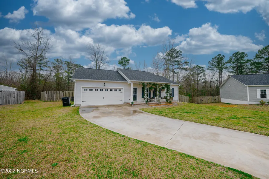 Here is your chance to own this charming home in the quaint little town of Hubert. As you pull into the driveway off of the cul-de-sac you will be greeted by the beautiful vines that were careful chosen to enjoy on the swing with your morning coffee. Step inside and be amazed by the brick fireplace and vintage mantel. This open floor plan boasts plenty of room for a sectional, farmhouse table and bar stools at the island. To the left you will find the master bedroom complete with a walk in closet and master bathroom with a tub and walk in shower. Right outside the master bedroom is the laundry room with a wash sink. Across the house you will find the full bathroom and two spare bedrooms. Walk out of the kitchen onto the deck and check out the fenced in back yard with several mature trees for extra privacy. Just minutes to base and shopping this house could be yours. Schedule your showing today.