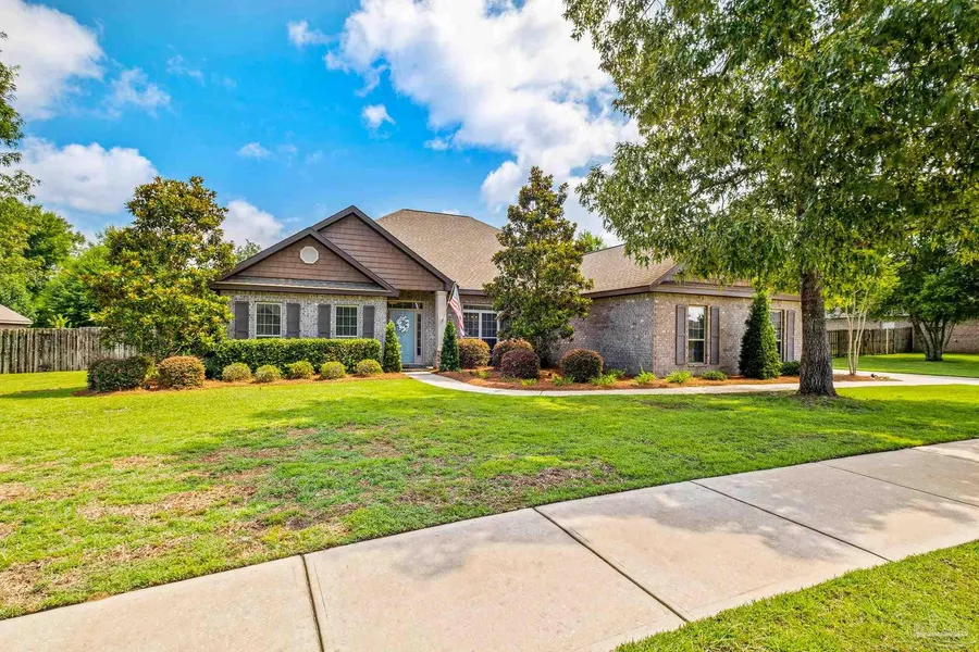 Welcome to this lovely Craftsman-Style, four-bedroom, three-bathroom home located in the charming Ashley Plantation neighborhood. As you step inside, you are greeted with natural light and custom finishes such as crown molding, arched doorways, tray ceilings and recessed lighting. The Office/Bonus Room is spacious and finished with a custom wall design and built-in with shelving and bookcases. The formal dining room is naturally well-lit, making it a warm and welcoming space for entertaining guests. A little hallway off the Dining, Living Room and Kitchen area gives quick access to the garage for those grocery trips, and a small storage closet is nestled in the corner for additional storage. The living room is cozy with a propane fireplace, a new chandelier light and a view of the backyard. The split floor plan includes an oversized master bedroom with a private door leading to the backyard, perfect for a pool or hot tub. The master bedroom is bright and airy with natural light and a tray ceiling. The master bathroom is a luxurious oasis with a separate tiled shower, double vanity, bathtub, water closet, and two walk-in closets. The gorgeous eat-in kitchen features a breakfast bar, dark brown cabinets, and granite countertops, creating a modern yet timeless space. Just off the kitchen, you'll find a full bathroom and adjacent bedroom. Two other bedrooms are located nearby, sharing a Jack and Jill bathroom with a double vanity and private toilet/bathtub area. The floor plan is perfect for children and guests. There is also a laundry room and side-entry two-car garage. The covered patio area features an extended patio area, perfect for entertaining friends and family. The backyard is privacy fenced, with plenty of acreage for a pool! This home has everything you need, from brand new carpet to luxurious bedrooms and bathrooms. Don't miss out on the chance to make this stunning home yours!