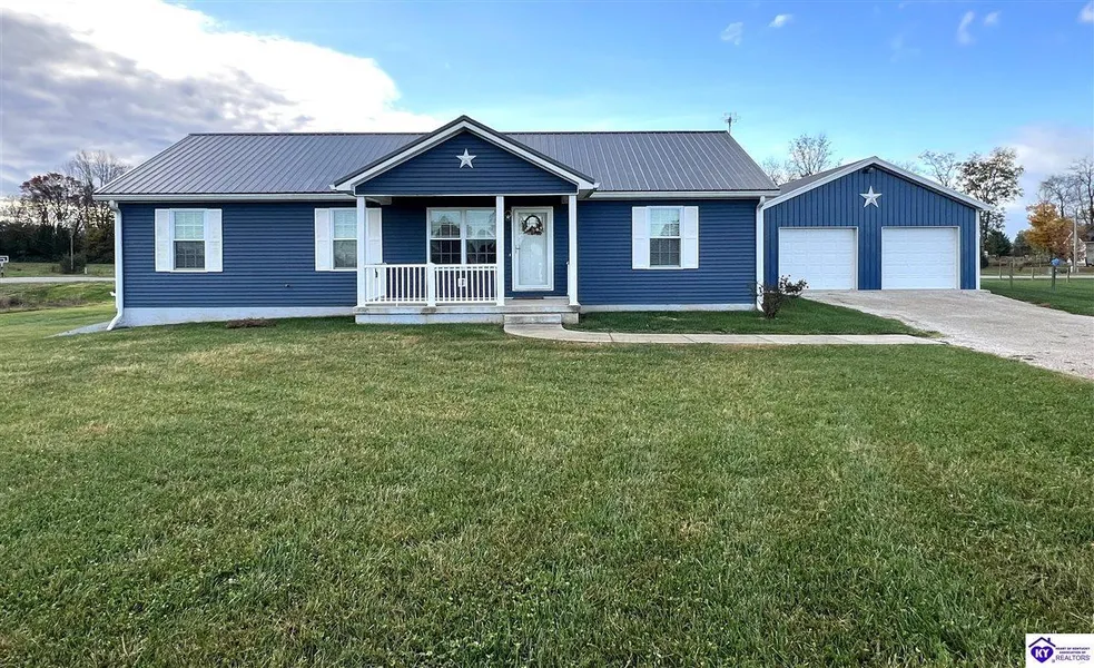 Compare this like new home to new construction and be amazed at the extra value found here. Custom built 3 bedroom 2.5 bath home has many upgrades not typically found in new construction costing tens of thousands more: pantry cabinet, kitchen island, soft touch light switches, upgraded outlets, double hung windows and upgraded exterior vinyl siding to name a few. Besides the abundant interior living space the floor plan features 2 ensuites! Interior features include a living room, kitchen with stove, refrigerator, dishwasher, microwave and work island too! Enjoy your dining area, 3 bedrooms, 2.5 baths, family room, and laundry room with sink. Comfort provided by central heat and air. Utilities include county water, septic system and KU Electric. Other extras include: multiple ceiling fans, solid wood interior doors, walk-in closets, walk-in tub in each bath(one is jetted) 10' x 12' covered side patio with ramped entrance between family room and the garage, luxury vinyl plank flooring throughout, 8' x16' covered front porch, metal roof with 6 gutters, fenced rear yard, 14' x 28' partial basement with electric. The detached metal garage/workshop measures 28' x 30' has 2 oversized automatic opener garage doors plus rear utility door. It also has electricity and concrete floor. Excellent location being close to I-65 Interstate and BlueOvalSK plant. This home features a 1 year Home Buyer warranty for your peace of mind and is in move-in condition. Seller is a licensed real estate agent