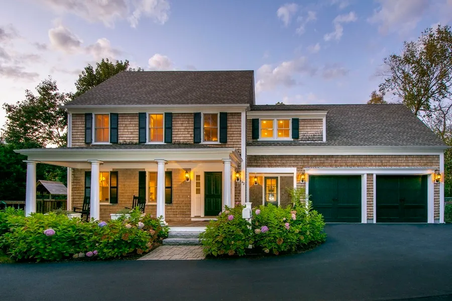 Tucked away in a professionally landscaped haven, this magnificent Nantucket style colonial offers an abundance of privacy without sacrificing convenience. The farmers porch, dining deck and bluestone patio provide perfect settings to enjoy the tranquil surroundings. Quality craftsmanship is noticeable at every corner of this Sally Weston architected home with more than 4600 sq ft sprawled over four separate levels. The expansive lower level offers a media room, game room, full bath and a surplus of natural light from the walk-out patio. Through the front door, you will find a bright, open kitchen, separate wet bar, two living areas and pocket doors throughout, which can be used to create a separate wing. Upstairs boasts distant seasonal water views, four large bedrooms, three full baths, spacious walk-in closets and a large office offering a peaceful working space. A private location, n...