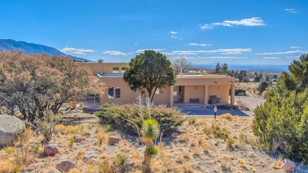 Exceptional SW style custom home with great utility and functionality while capturing outstanding views from mountains to Rio Grande Valley. Multiple living & dining areas and great separation with upper level master suite offering ultimate comfort & vistas. Lower level ideal for children's wing, rec. room or home office- so many possibilities. Outstanding attention to condition with updates/upgrades including roof, stucco, septic & two remodels by Jade and Paul Davis. Granite, slate & tumbled marble quality finishes, gaslog frplc, pellet stove & much more! Outdoors- splash into the gunite pool, enjoy the covered patio plus view deck all while basking in the attractive outdoor low maintenance landscape. Unique custom home just blocks to the National Forest trails & wildlife. Don't wait!