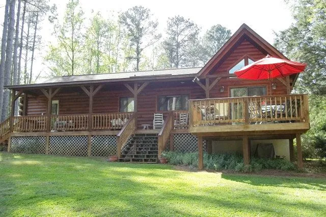 Tranquil Lake Living from this Lakefront Lodge. Pretty lakefront property that gently rolls to the waters edge & single boathouse w/ jet ski lift. Log home w/ 3BR/2 BA, sitting area, kitchen w/ Granite cntrtps, formal living area & dining. Small loft area to enjoy quiet reading, play area or use for storage. Access the lakeside deck from either the living room or the MBR. A portion of the deck is covered while an area offers full sun & outdoor dining. Lovely manicured lawn. 2-car attached garage w/ covered walkway to enter residence. 2 outbuildings. A quiet cove just off the main lake. Ample waterside seating to entertain, enjoy the lake view or just go fishing!