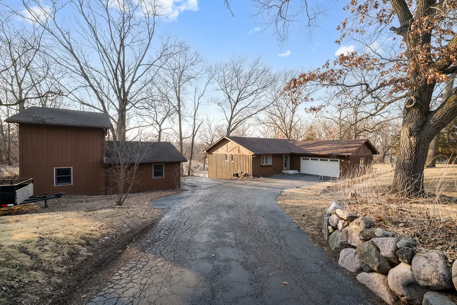 Nestled in a prime Roscoe location, this beautifully maintained ranch home offers over 2,800 square feet of finished living space within the highly sought-after Roscoe/Hononegah school district. The main floor features an inviting open floor plan with hardwood flooring throughout the main living areas. The updated eat-in kitchen boasts granite countertops, 42" upper cabinets, and access to a composite deck, perfect for outdoor enjoyment. The spacious living room also provides access to an additional deck, enhancing the home's seamless indoor-outdoor flow. Two generously sized bedrooms and a well-appointed bathroom with a deep Jacuzzi tub and double vanity complete the main level. The fully finished walkout lower level offers a cozy family room with a freestanding wood burner, a dry bar, and an additional large bedroom with a walk-in closet featuring custom shelving. A second updated full bathroom adds convenience, while the walkout design provides direct access to the fenced portion of the backyard and a lower-level patio. This home also boasts six-panel doors throughout. New dishwasher, microwave, and washing machine in 2024. An attached two-car garage, and a detached 2.5-car garage (27'x23') with electric, heat, and a 220 outlet. Above the detached garage, a 23'x12' storage area adds even more functional space. Don't miss this incredible opportunity to own a spacious, well-equipped home in an unbeatable location! Agent Related