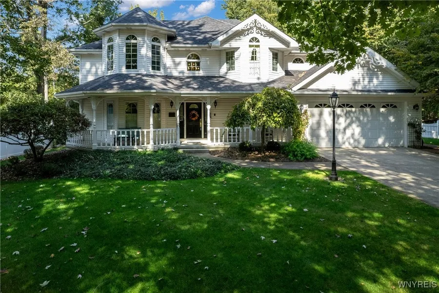 A lovely and well cared for Victorian home on a gorgeous private wooded lot with just over ¾ acre. Wonderful floor plan with cathedral ceiling foyer. Kitchen with gorgeous cabinets and island with a breakfast bar & quartz countertop, newer appliances. Warm & inviting LR with vaulted ceiling and skylight, hardwood floors & gas fireplace. 4 season sunroom w/beautiful windows & spectacular views of the yard. Formal DR w/Brazilian cherry hardwood floors & crown molding. Den w/French doors & plantation shutters. 1st floor mudroom. Home has custom painted walls (NOT WALLPAPER). New carpeting on the second floor. Main bedroom suite w/cathedral ceiling. Bonus room could possibly be a 4th bedroom. Stamped concrete patio & lush gardens in the private yard. Central vac, tear off arch roof'10, furn'11, HWT & Sump pump'15, Custom built 2 story shed '11. Tons of natural light throughout the house from the beautiful large windows. Abundant closets including a 2nd floor cedar closet, an electric pet fence, owned alarm system and 3 car attached garage. The furnace and H/W tank have been serviced for the season ‘24. Per sellers’ request, offers if any, will not be reviewed until 10/12/24 @ 3pm.