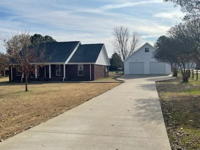 IMMACULATE ONE OWNER HOME CUSTOM BUILT IN 2013. This lovely home features 3 bedrooms, 2 baths large family room, dining room and kitchen with 12' ceilings. Primary bedroom is large with trey ceilings. Primary Bath with whirlpool tub/shower. Hall bedroom has tub /shower. Hard wood floors with ceramic tile in kitchen and baths. Laundry is good size. Exterior cameras, patio, partially fenced, split rail. 30 X 30 2 story detached double garage/workshop w/ electricity. Survey available shows .79 AC. Central School Bus runs in front of house.