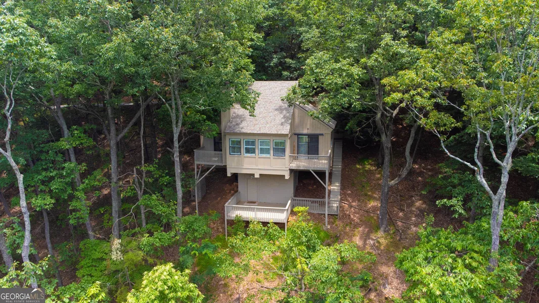 This modern cabin meticulously renovated rests amongst the mountains and valleys of the award-winning gated community of Big Canoe. Enjoy your morning coffee or relax with a glass of wine on the decks with peaceful mountain views and the sound of the rushing stream. Distinctive exterior features new paint, retaining wall, parking pad, stairs, architectural roof, and three private decks providing serene outdoor living space. Inside, the design elements maximize the connection to nature - vaulted ceilings with exposed beams, windows that flood the interior with south facing natural light, custom carpentry, cedar hardwood floors, freshly painted designer neutral Farrow and Ball color palette, and Ballard Design light fixtures. Custom plantation shutters were installed last year for maximum efficiency of indoor temperature control. The kitchen has Carrara marble countertops, newer stainless appliances, and a dining space large enough for formal entertaining, while opening up to the living room for freedom of movement. The living room features a fireplace with unique nineteenth century oak mantel and surround and walls of windows with views of the mountains. Master suite with private porch offers a tranquil treehouse feel escape and a refreshed bath with high end Kohler pedestal sink and toilet with beautiful brushed brass Delta fixtures. New HVAC system ensures efficient comfort. The loft is currently set up as a cozy home library but has been used in the past as a bedroom. Surrounded by hardwoods, hemlocks, a mountain stream on property that can be heard from the decks, and nearby hiking trails, this bright and airy home in the treetops with notable views is a rare find that must be seen to fully appreciate.