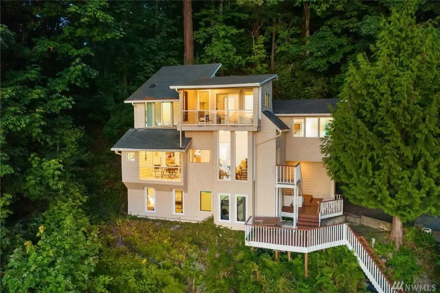 Secluded sanctuary w/ breathtaking mountain & Sound views in every room. Rare private park-like setting nestled on hillside w/ stream, pond, rolling hills, wildlife. Custom design w/ open kitchen (granite), office patio, welcoming bedrooms, all w/ water views. Huge, airy owner's suite w/ vaulted ceiling, walls of windows, ensuite soaking tub. Fantastic location near beach parks, shops/dining, elite golfing, downtown Steilacoom, boating. Life here is more peaceful, more beautiful, more exciting.