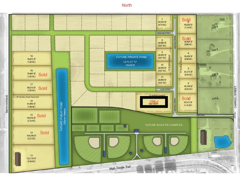 Welcome to Trailside Development in Slater! Here, you'll find the perfect blend of convenience and tranquility, with easy access to nearby cities like Ames, Ankeny, and Des Moines, all while enjoying the charm of small-town living.Imagine waking up in your dream home, nestled on a spacious lot overlooking a serene private pond. At Trailside, we offer multiple lots with picturesque pond views or established tree line lots, ensuring that each homeowner can enjoy their own slice of paradise.For those who prioritize an active lifestyle, Trailside has you covered. With future athletic fields nearby. Additionally, the nearby High Trestle Trail provides the perfect setting for biking enthusiasts to explore the beautiful Iowa countryside.At Trailside Development, we understand that your home is a reflection of your unique style and preferences. That's why we offer the flexibility for you to brin...