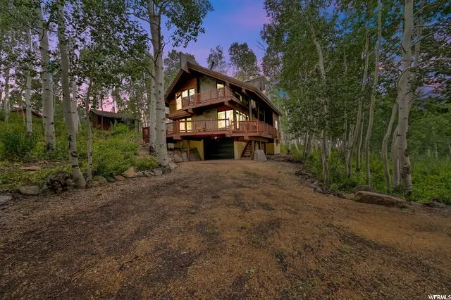This fully-furnished, meticulously well-cared for cabin was custom-designed with every detail in mind. With its unique cedar wood and slate exterior, no details were overlooked when this mountain getaway was constructed. Stunning ceiling-to-floor windows maximize views from every angle! Special features include granite counter tops, magnificent exposed beams, custom staircase, massive skylights, gorgeous natural light, large, solid decks to enjoy quiet relaxation outdoors and incredible wildlife. The luxurious primary suite upstairs is your own personal retreat, featuring vaulted tongue & groove ceilings, private balcony, cozy sitting area and heated bathroom floors. Nestled in mature landscape with soaring trees and a professionally designed trail system that winds throughout the heavily-wooded property. Adjacent lot also available for sale. Pull-through garage has plenty of storage space and a workshop. Close to the Sledding Hill & Beaver Springs common areas with private snowmobile access that leads into endless acres of Uinta National Forest. This cabin is literally your opportunity to own your own mountain escape that has the ultimate checklist of quality, privacy, location and design that are truly irreplaceable in Timber Lakes! Only an hour to the SLC airport, 45 minutes to Provo and just minutes from all the fabulous amenities of the Heber Valley & Park City right at your fingertips!