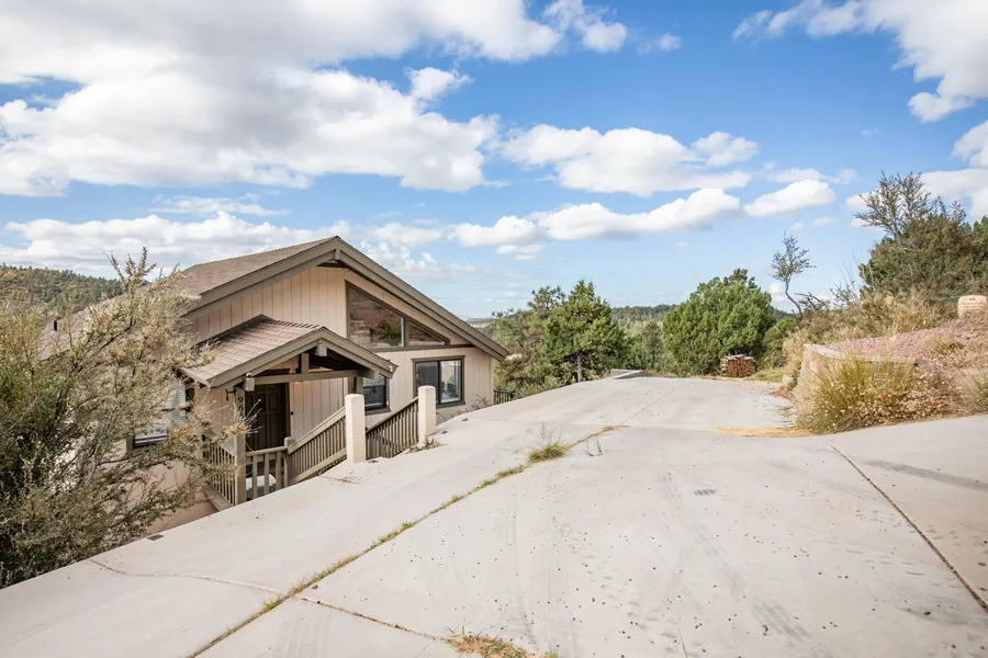 Perched on the edge, this chalet-style cabin offers panoramic views of the meadows and majestic mountain s as far as the eye can see. The charm is immediately as soon as you open the front door. You are welcomed into the great room that serves as the heart of the home. The wall of windows captures the breathtaking views, inviting the natural indoors. A stylish wood accent wall adds a tough of character, complemented by a beautiful electric fireplace that radiates warmth and ambiance. Souring exposed beams stretch overhead, creating an open airy atmosphere and the wood flooring adds a touch of rustic charm..The kitchen has been thoughtfully designed with modern conveniences offering, ss appliances, quartz countertops, and a breakfast bar. Off the kitchen is a quaint nook that serve