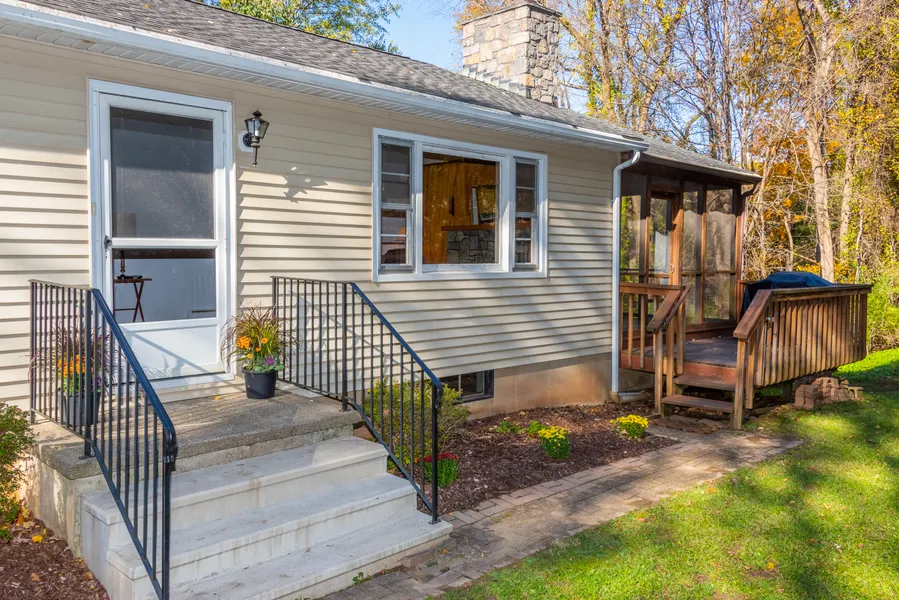 A paved driveway leads to this Sun filled 3 bedroom home with hardwood floors and a wood burning fireplace in the living room. The dining area is conveniently open to the kitchen, and a doorway leads to a to a spacious screened-in porch. Located at the end of the hallway the master bedroom has a half bath. A full attic with pull down stairs for access provides room for storage. The one car garage can easily be converted back into a 2 car garage. Potential living space on the lower level includes a large heated room with a fireplace, and an additional room with a half bath. A new boiler is being installed mid November, and the roof is only 8 years old.