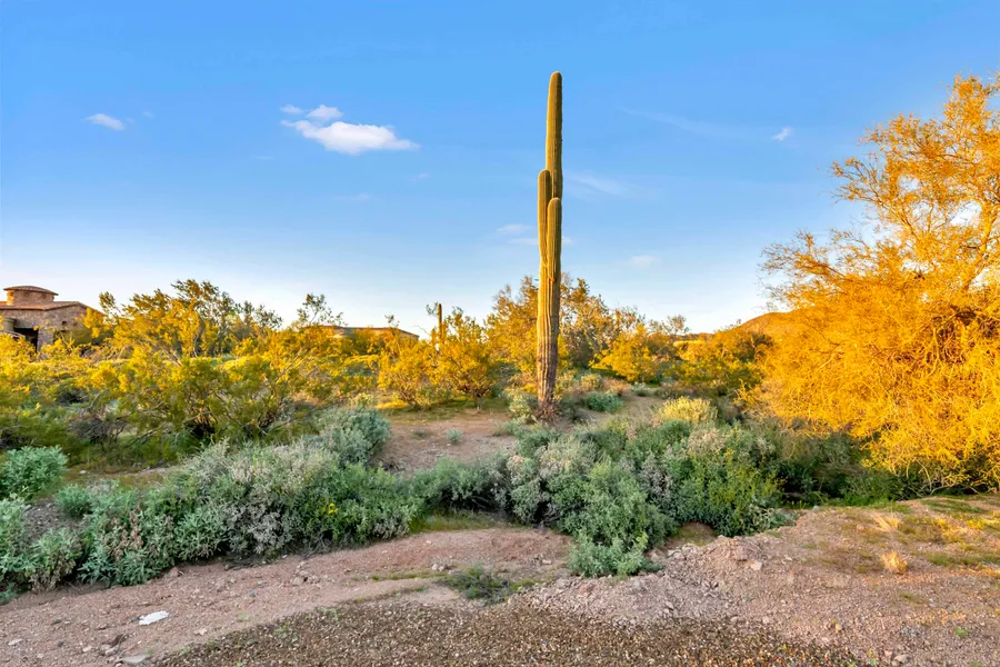 Mountain and city light views with breathtaking sunsets. This quiet luxury community of 6 lots is an excellent option for those in search of a no HOA lot within a stately community of gorgeous homes in the million dollar range. Mostly flat, easy to develop, 3/4 acre lot with exceptional natural vegetation. Utilities and water on site as well as several saguaros. Easy access to the 202.
