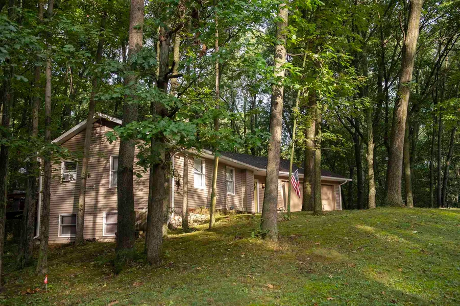 A beautiful and serene 3 bedroom and 2 full baths ranch home with a walkout basement tucked in the woods situated on the northwest side of Snow Lake in Steuben County. The home is less than 8 miles from the 80/90 toll road and Interstate 69 in the northeast corner of Indiana. The roomy updated ranch home offers large living room connected to a wrap-a-round rear deck that connects to the dining and kitchen rooms. Two bedrooms on the top floor offer windows that allow a breeze from the woods. Panoramic windows in the dining and kitchen areas offers a scenic vista of woodland. A short walk down the carpeted stairway to the finished basement you step into a quaint sitting room that opens up to the backyard. A large master bedroom has a full bath and a walk-in closet. Two fire pits just off the sitting room patio doors allow for summer and fall fun. A roomy, attached 2-car garage can easily hold a large sized vehicle and boat if you wish. Roof approximately 5 years old. Propane heat / water heated baseboards & Gas Stove. The nearly 1 acre of land offers privacy and serenity that other properties don't come close. If you love wildlife, this is the closest thing to a nature preserve. Often deer, wild turkeys, and birds can be spotted on or near the property. Pokagon Bay and Deer Island is just around the corner. If boating is in your plans, the Jimmerson Lake boat launch just a few miles down the road lending access the chain of lakes for summer and fall fun !!