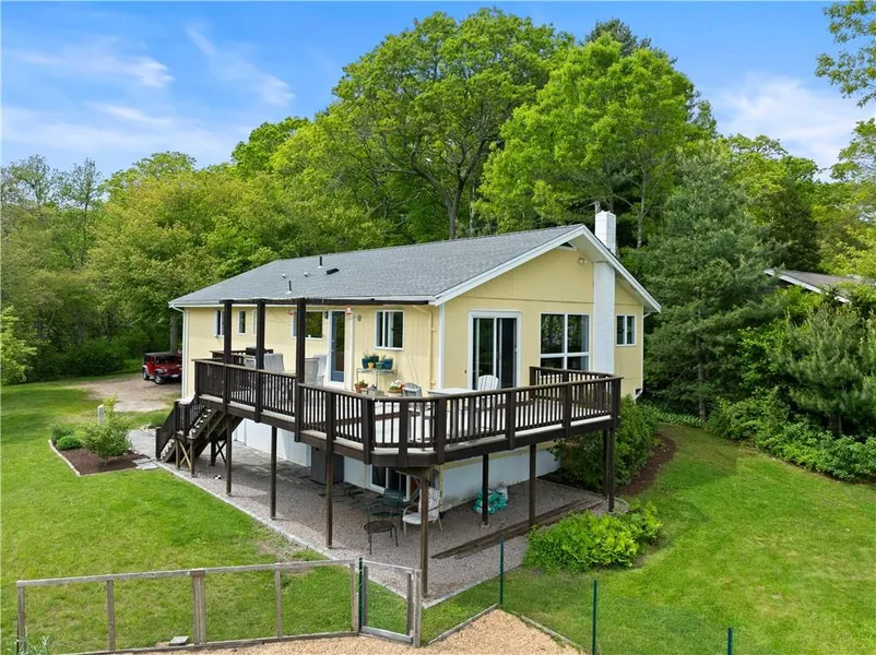Welcome to your private lakeside retreat on beautiful 77-acre Pasquiset Pond! This lovingly maintained and thoughtfully updated home is tucked away on a private lot with direct lakefront access reserved exclusively for residents. Surrounded by lush flower gardens, vegetable beds, and incredible water views, it offers peace, privacy, and a true connection to nature. The main level features a spacious open floor plan with a remodeled kitchen, dining area, and living room—all oriented to capture breathtaking views of the lake. Enjoy LVP flooring throughout, two full baths, and three bedrooms, including a primary suite with its own updated bath. Step outside to a wrap-around deck overlooking the beautiful grounds and tranquil water. The lower level includes a large recreation room with a walk-out slider, a laundry room, utility area, workshop, and access to the oversized two-car garage. Stay comfortable year-round with ductless AC, and unwind in your own private lakefront sauna. Located just 15 minutes from the sandy shores of Charlestown Beach, you’ll enjoy the best of both freshwater and saltwater living. Whether you're sipping coffee on the deck or kayaking on the peaceful waters, this is lakeside living at its best. A rare opportunity to own a special piece of waterfront paradise—come see all that this unique property has to offer!