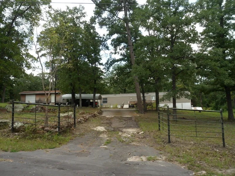 This three bedroom, two bathroom single wide mobile home sites on a slab foundation atop a hill overlooking towering trees and flower gardens on approx. .8 an acre. Storm shelter just outside the front door installed just one year ago. Lots of concrete parking with circle drive and a one car carport. Two storage buildings, one with roll up door and workshop. Smaller building one year old. Garden area at entrance encircled with boulders and awesome rock wall leading up between the two lots. Second lot is big enough for a second home if needed and has a great garden spot at back. Wood deck and garden area at front along with concrete patio areas. The master suite is split, faux wood vinyl flooring in kitchen, dining and bathrooms, with carpet in living and bedrooms. Seller wants to convey sofas, recliner and two shelves in living room, along with refrigerator, washer/dryer, microwave stand...