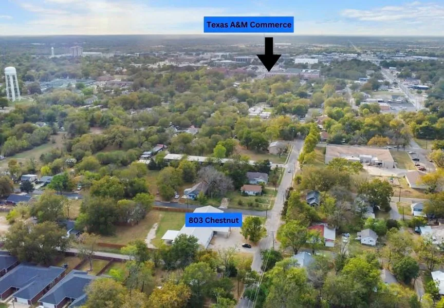 Unlimited possibilities for this property less than a mile from Texas A&M Commerce! One bedroom with full bath and another with half bath. Then an additional 8 bedrooms off the main room. Two community bathrooms. One includes 2 showers, 1 ADA shower, 2 lavatories, water closets, and 1 urinal. Second bathroom includes 3 water Closets with partitions and lavatory. Full Kitchen with community area, main gathering room and office. Loft room upstairs. Laundry Room with 2 washer & dryer combo with utility sink. Sprinkler riser room with water heaters. Many new updates within the last two years to include new water heaters and HVAC system. New covered patio and 8’ wood privacy fence. 20’ storage shed. Pool table, air hockey, foosball table will all convey. Fully furnished can be negotiated.