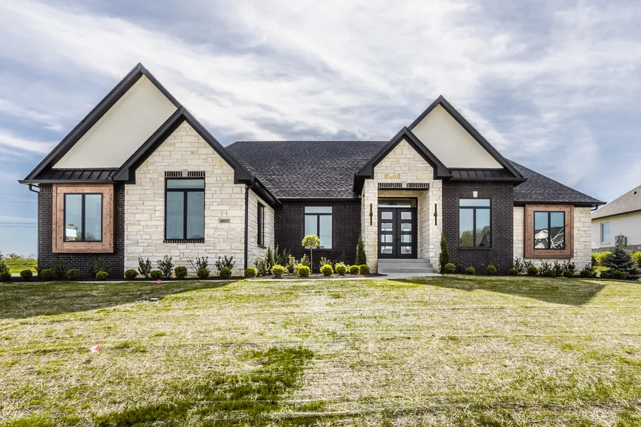 Welcome to your dream modern ranch oasis, where sophistication meets comfort in every corner. This stunning residence boasts a perfect blend of sleek and cozy textures, creating an inviting and contemporary atmosphere throughout. Step inside and be greeted by an open-concept living space that seamlessly connects the living, dining, and kitchen areas. The expansive windows flood the space with natural light, accentuating the sleek features and rich engineered wood flooring. The heart of this home is the gourmet kitchen, equipped with high end appliances, sleek black quartzite countertops that splash up the walls, and ample storage in the butler's pantry. The main level features three bedrooms, each thoughtfully designed with modern finishes and generous closet space. The master suite is a sanctuary of luxury, offering a spa-like bathroom with dual sinks, a soaking tub, and a walk-in shower. Descend into the lower level and discover the ultimate entertainment hub. A wine room awaits, perfect for connoisseurs to showcase their collection. The basement also features a well-equipped workout room. Host unforgettable gatherings at the chic basement bar that contains a second refrigerator, dishwasher, and microwave. Whether you're enjoying a casual night in or entertaining friends, this space is designed for both relaxation and entertainment. Step outside to the covered back patio, an extension of your living space, where you can unwind and enjoy the fresh air. The patio overlooks a meticulously landscaped yard, providing the perfect backdrop for outdoor activities and gatherings. The combination of clean lines, neutral tones, and natural materials creates a timeless aesthetic that will impress for years to come. This modern ranch with a basement is not just a home; it's a lifestyle. Seize the opportunity to make it yours and experience the epitome of contemporary living in every detail. Welcome home to luxury, style, and comfort. **Last 6 pictures are renderings.