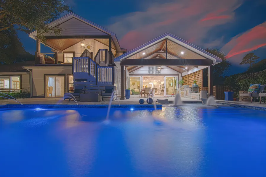 Back on dry land, the meticulously maintained landscaping includes shady live oaks draped with moss. Head indoors to appreciate more of the Southern plantation ambiance. The newly appointed gourmet kitchen is sure to be an inspiration to keen cooks and a place to gather as a family for informal meals and happy chatter and is highlighted by a gas range, quartz countertops, expanded bar area, all brand stainless steel appliances and walk-in pantry. The generously-sized great room and rear porch provide enviable space for everyday living and entertaining, all with calming bay views. The interior of this elegant bastion reflects extensive renovation creating a tasteful home with a generous floor plan. The master suite occupies a private wing with floor-to-ceiling windows framing views of Choctawhatchee Bay, wading birds and rosy dawn-kissed skies to wake up to. His-and-hers closets and twin marble vanities complement the waterfall jacuzzi tub in this tranquil haven. The versatile accommodation includes a large recreation/multimedia space, an upstairs office/den, a theatre room with high end audio equipment, beautiful Florida room and guest bedroom with balcony, capturing more breathtaking bay vistas. We have yet to mention the brand new $150,000 custom pool, replacement roof, two new HVACs with air purifying system, home security and golf cart. 320 Hideaway Bay is in excellent proximity to all that Destin and South Walton has to offer; just minutes from Sandestin Outlets, fine dining and shopping at Grand Boulevard, the Destin Harbor, Sacred Heart Hospital and an easy drive to 30A. This is a home that words cannot do justice; it has to be experienced to be truly appreciated.