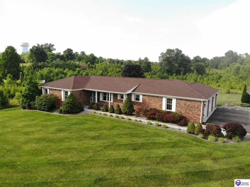 The first thing you will notice is the great curb appeal with well manicured landscaping. This beautiful brick home boasts three bedrooms and two bathrooms. It remains in excellent condition. It is well-insulated, resulting in low utility costs. Key Features: Three-car garage, Chain-link fenced yard perfect for pets, Additional attic storage, Natural wood trim, Covered back porch Furthermore, there is an additional space that previously accommodated an RV, enhancing its versatility. Location is important and this charming property offers a perfect blend of country living and modern convenience being very close to Elizabethtown & Ft Knox.