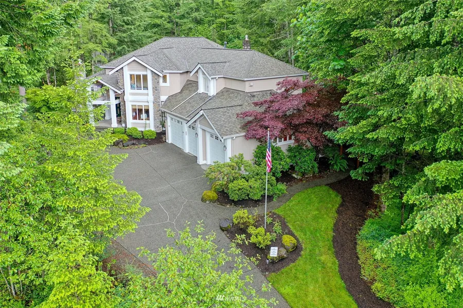 Spectacular home with new custom kitchen designed for entertaining & cooking. Refinished hardwood floors flow through the 1st floor. All bathrooms have been updated; primary bathroom has heated tile floors & a walk-in closet. Home includes all appliances, gas furnace was replaced, roof replaced in 2019 has a 35 yr transferable warranty. Backyard water feature, hanging baskets with drip systems, green house & 16X36 feet detached shop, 10X11 foot garage door. WoodRiver HOA owns a private trail system that leads to over 1200 feet of Snoqualmie River front. WoodRiver development in North Bend offers a relaxed ambience with a private HOA trail next to the Snoqualmie River, and only minutes to Issaquah.