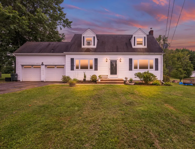 Modern/contemporary style with classic wood features await you in this 4 (possible 5) bedroom stunning Cape Cod. Gorgeous pegged wood floors on the first floor and the sleek ceramic tile compliment the updates and function in design. Amazing kitchen with granite counters, smart range/oven with a custom butcher block and stainless steel range hood plus custom open shelving! Storage galore plus a pantry for a chef's delight with views of the apple trees in the backyard that is nearly an acre with full woods on the back property line. Open concept dining room to kitchen for ease of entertaining. The spacious living room features a fireplace for cozy warm fires while relaxing during the fall and winter. A 1/2 bath located on the first floor is updated and great for guests. Upstairs via the front stairway is the ease of 2ND FLOOR LAUNDRY, full bath and 2 bedrooms. One is the current master wi...