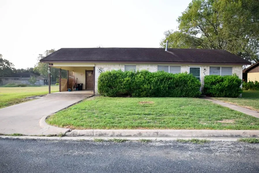 Cute home on almost an acre in Schulenburg has 3 bedrooms, 1 bathroom and a carport. The common areas are in the front of the home with Kitchen, living and dining rooms. The bedrooms are in the back of the home. Laundry area in hallway.