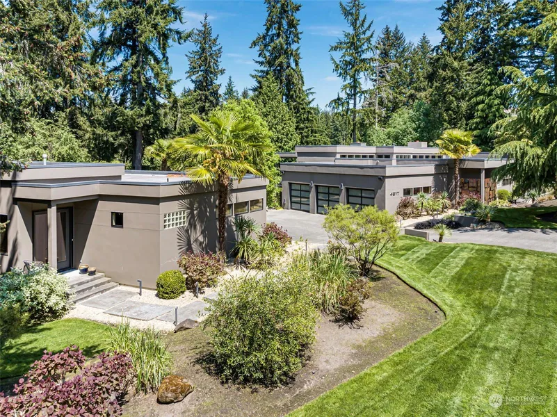 If you are looking for that special one of a kind Canterwood Fairway home, look no further! This contemporary Hoppet designed one level home sits above the 2nd frwy. A dbl lot that consists of a 4387 sqft main home with a 988 sqft gst home. The open concept layout has a chef's kitchen that flows into the dining rm and gorgeous grt rm. Slide back the doors for more entertaining space and you have a large patio and your own infinity edge pool, spa and wood burning fireplace. The primary has 8' tall wndws and french drs that also open to the patio. A cool Jack and Jill area with 2 bdrms, bath, laundry along with separate guest quarters round out the main home. The ADU consists of everything you would need for your gsts to never want to leave!