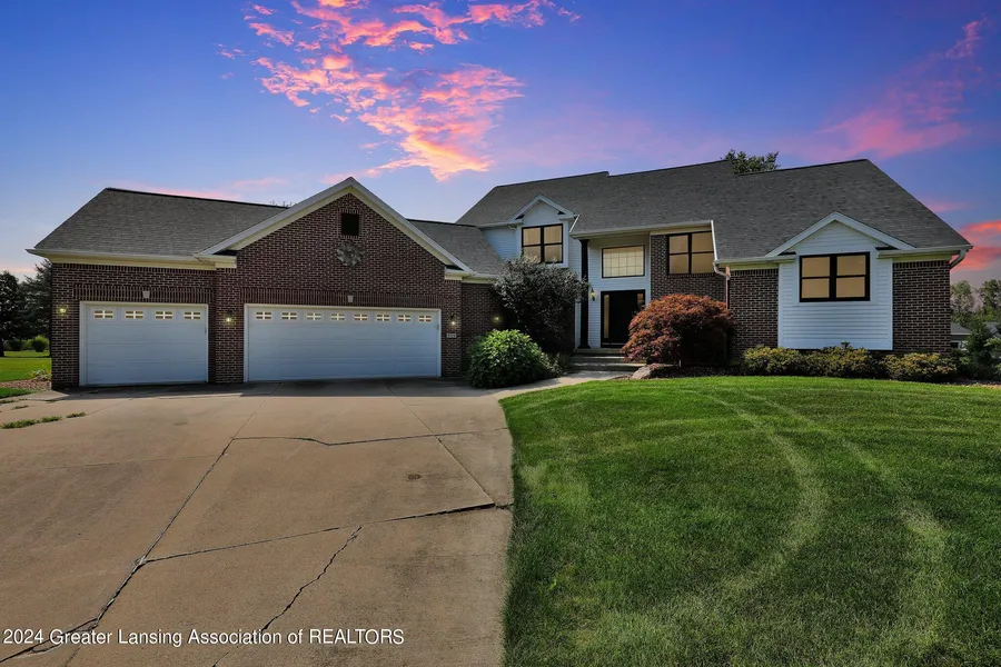 The seller has accepted an offer contingent upon the buyers home sale and close of their own property with a 48 hour right of first refusal **Welcome to Your Dream Home in a Serene Cul-de-Sac!** Nestled in a quiet cul-de-sac, this charming home offers a perfect blend of comfort and style. The exterior boasts brick and vinyl siding with a new roof installed in 2021, a spacious three-car garage featuring a sleek concrete epoxy floor, and a fenced backyard complete with a fire pit and a composite deck with storage underneath-ideal for outdoor gatherings. Step inside the grand foyer, leading to a sunlit living room with soaring ceilings, tan carpeting, and surround sound wiring-perfect for movie nights. The formal dining room, adorned with hardwood floors and white trim, opens to the back dec k through a sliding door, making it perfect for entertaining. The heart of the home, the kitchen, features cream-colored cabinets, granite countertops, stainless steel appliances, a gas stovetop, and a walk-in pantryperfect for the home chef. Adjacent is a casual dining area with vaulted ceilings and a cozy family room with a gas fireplace and access to the deck. The primary suite is a retreat, featuring hardwood floors, a vaulted ceiling, and a spa-like bathroom with a jetted tub, walk-in tiled shower, and dual vanities. The finished basement adds versatility with a kitchenette, a fourth bedroom, and a full bathideal for guests or a private home office. Additional highlights include a first-floor laundry room with utility sink, a Jack and Jill bathroom, and ample storage space throughout, including a utility room with a brand-new Richmond instant hot water tank and high-efficiency Carrier furnace. Don't miss this opportunity to own a beautiful home with endless features and a prime location!