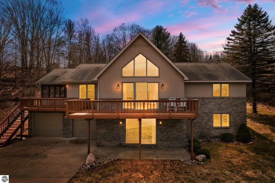 Come take a look at this custom built 4 bedroom, 3 bath, attached 2 car oversized garage home located in Orchard Hills. Location is key and this home has an excellent one that is quiet and within walking distance to Torch Lake (2000ft). Take advantage of the shared access at Orchard Hills private beach club on Torch Lake w/ 165 feet of frontage. The layout of the great room features scenic views of Torch Lake, a beautiful stone fireplace and hosts a spectacular wall of windows. The ample windows throughout coupled with the cathedral ceilings bring in an incredible amount of natural light to the main floor. The main floor also features a Master bedroom with views of Torch Lake. The third bedroom/den/home office has a private door to the spacious 456 sq ft deck. A generous fourth lower level bedroom, has a walk in closet, and cute niche perfect for a desk. The lower level family room has a...
