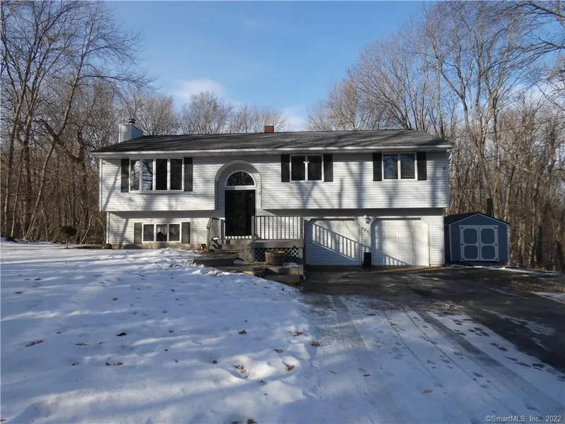 Don't miss out on this beautiful Raised Ranch style home situated on a level & private 0.86 acre lot. This property features 2,000 sqft of living space, with three spacious bedrooms, 2.5 baths, two-car garage, and an oversized driveway. The main-level offers an open layout, with vaulted ceilings in the living room, dining room and kitchen. Sliders off the dining room open to a two-tiered deck that overlooks a huge backyard, offering privacy and tranquility. The lower level has a cozy family room with a pellet stove, and sliders that lead out to the backyard & fire pit (perfect for entertaining.) A half bath & laundry room are located off the family room. There is ample storage throughout the home and a custom built shed for additional outdoor storage. Recent upgrades to the home include, new roof (7 years ago), new heating system installed in 2020, new central air & septic system install...