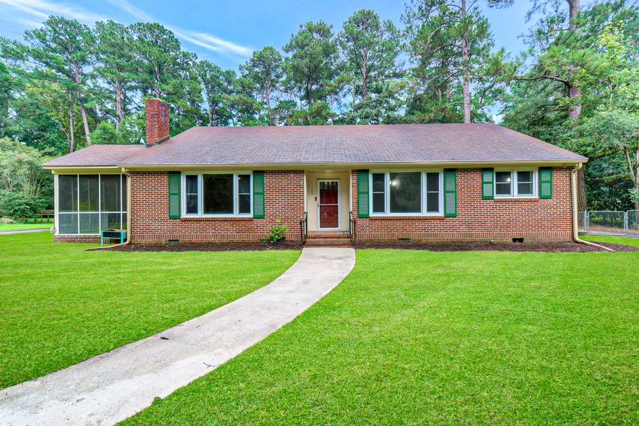 Nestled in the highly desirable area of Old House Road, this charming 1958 brick ranch-style home sits on nearly one acre of land enveloped by mature trees. Enjoy a peaceful wooded oasis, with no POA, that offers privacy yet proximity to the conveniences of town. Original hardwood floors, crown molding, and multiple fireplaces infuse the home with character. At the same time, elements like smooth ceilings, new appliances, and a new water heater make this a move-in-ready opportunity. A screened-in porch, fenced-in backyard, and storage shed allow for further enjoyment of this property's expansive lot.