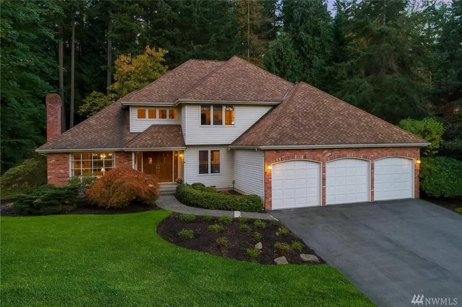 Magnificent classic home, nestled in Woodinville's wine country. Sumptuous details: wainscoting, rich hardwds, walls of windows. Airy family rm w/gas fire, box beams, step-out to massive 1,000 sq ft deck – entertainer's dream! Chef's kitchen w/ plentiful cabinets, huge master w/ deep tub, grand office. 4th room upstairs with closet used as 4th bedroom. Spectacular property. A/C, 3-car garage. Stellar location near top Northshore schools, parks & trails. Simple commute to Redmond/MSFT. Must see.