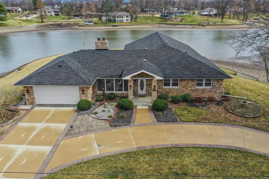 SHOWINGS BEGIN SUNDAY, MARCH 27TH @ OPEN HOUSE FROM 1-3PM. Views like these don't come around very often! This exceptional LAKEFRONT home is situated on a spectacular lot surrounded by an expansive sea wall. The master suite w/gas fireplace and walk in closet is perfectly positioned overlooking the lake and separated from 3 more comfortable bedrooms & tiled full bathroom. Escape to your master bathroom w/dual sinks, jetted tub, walk in shower, separate camode, & laundry room. Cozy up to any of the 3 fireplaces or step outside to your lovely arched patio before heading down to your firepit/lounge patio just next to the water & boat dock. There are so many features (circle driveway, crown moulding, hardwood & tile flooring, window coverings, lovely landscaping, vaulted ceilings) to mention, you really need to come experience, for yourself, lake living at it's finest! Updates: sea wall 2011, roof, 2020, water heater 2020, water softener 2021, kitchen appliances approx. 5 years old.