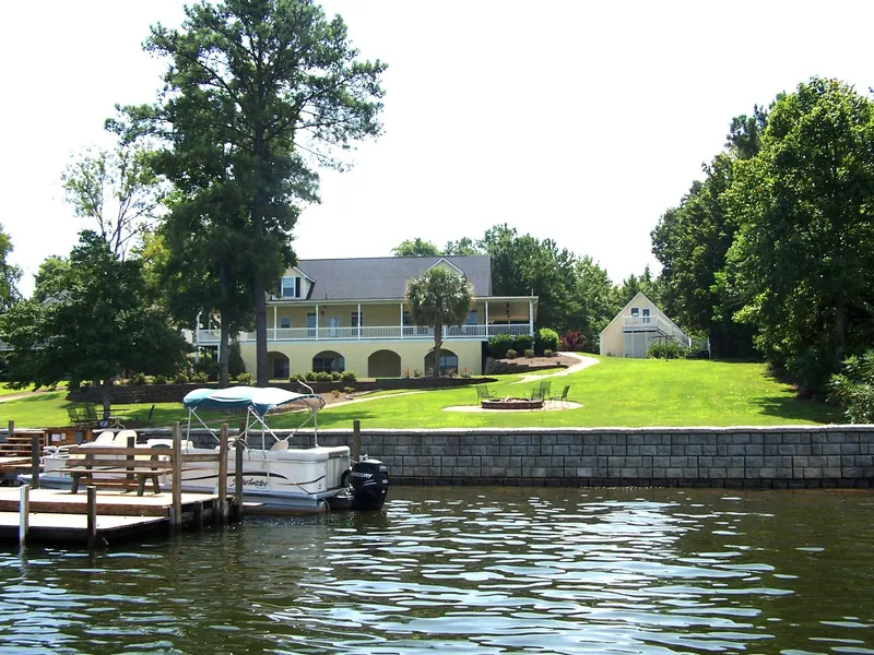 Majestic open plan home w/ spectacular long range view up Lake Greenwood, magnificent sunsets, & deep water. 3 floors offer comfortable living quarters on the Main Level w/ beautiful hardwood floors, wrap-around covered porch, Master Suite + another Bedrm; an additional 4 Bedrms, 2 Baths, full Kitchen, Fam Rm & Media Rm downstairs; & a large open Great Room upstairs w/ half Bath, + another large Bedroom w/ full Bath. On the main floor, Kitchen, DR & LR all open to each other & the extraordinary lake view. Kitchen features gleaming granite counters, double stainless sink, center island w/ another sink station, custom cabinetry w/ pull-out shelves, under cabinet lighting, & a professional GE Monogram electric oven along w/ 6-burner gas stove that has a heat lamp & warming shelf. LR takes full advantage of the lake view w/ a wall of windows & has a gas FP. Master Suite opens to the view w/ a private porch exit. Luxuriate in this Master Bath w/ granite counters, double sinks, jetted tub, custom tiled shower & large Walk-in Closet w/ organizers. A 2nd Bedroom uses another full bath w/ custom-tiled shower. Spacious tiled Laundry Rm has lots of cabinetry, deep sink & great pantry storage. Downstairs is set up beautifully for full-time living or entertaining family & friends. The full kitchen has an ice-dispenser fridge, smooth-top stove & big open lake view. Enjoy the darkened, tiered Media Room w/ 10-inch insulated walls & 12 inches between floors. Two more full baths are nearly mirror images of each other w/ custom-tiled showers, & serving the 4 downstairs Bedrms. Upstairs, the berber-carpeted Great Room offers many so many possibilities- Rec Rm, Hobby Room, Office- or all three! There's also a convenient half bath + a large separate Bed/Bath Suite. Loads of storage space on every floor. Energy-efficient home has everything you expect- R-30 in ceiling, R-19 in walls & between floors, programmable thermostats, whole-house ventilation system, & electric heat w/ gas back-up. Precast, moisture control Superior Wall system; home is built to withstand 130 mph winds! Super sealant on exterior walls & French drain system to ensure the walk-out basement stays very dry. 4 HVAC units- two for main floor, one up, one down. Two water heaters in the main house. An average $270 a month for electric- fabulous track record for this size home! Natural gas for FP, stove, heat & grill hook-up. Piped for natural gas access upstairs & down if future owners desire. Water filtration system. Construction exceeds all building codes w/ 3x18 footers, 2x6 construction + extra support walls. 16KW back-up generator for peace of mind. Loads of open parking, plus a detached 2-car carport, plus a house-matching 2-car Garage + Workshop w/ sink that offers a full FROG- great for guests, a renter, a teenager, an office, a studio. This Finished Room Over Garage is 31x15 & includes a full bath, its own HVAC & water heater, & a balcony deck to enjoy the outstanding lake view. The 27 Maidstone estate has lake-fed irrigation & is professionally landscaped w/ Sable palm trees, Japanese maples, evergreens, flowering crepe myrtle, flower beds. Healthy garden w/ solar-powered fence for your green thumb, too! Sellers are growing squash, melon, cukes, peppers, tomatoes, berries, roses etc. Enjoy the custom brick walkways, fire pit, & expansive water frontage w/ concrete sunning patio, flagstone cocktail patio, keystone retaining wall, & roomy pier w/ boat slip, power & water, waterslide & swimming platform/fishing/relaxing deck. No such thing as Too Much Fun! Love Your Lake Life!