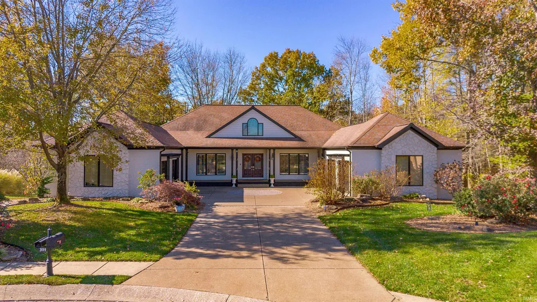 This stunning 5-bedroom, 4.5-bathroom home built by R.A McGillem showcases a perfect blend of modern design and unique architectural features. Upon arrival, you are greeted by an inviting white exterior complemented by sleek black accents, a spacious covered porch, and a distinctive split garage design featuring two separate two-car garages, a total of four. As you step inside, the soaring ceilings of the foyer create an impressive first impression, leading you to a formal dining room to your left. The foyer seamlessly transitions into the inviting living room, adorned with charming, beamed ceilings and a cozy gas fireplace. The large, updated kitchen, which overlooks the living area, boasts an extra spacious island and casual dining, modern stainless-steel appliances, a convenient walk-in pantry, and a breakfast nook. The owner suite offers a private retreat with direct access to the open deck, complemented by a luxurious updated bathroom, new tile floors, a soaking tub, a dual sink vanity, a spacious marble walk-in shower, and an expansive walk-in closet equipped with built-ins. The main level concludes with a versatile bedroom that can serve as an office. With private access through a secondary garage and an attached full bath, this room is perfect for guests or as a second owner suite. The finished walk-out basement, with ten-foot ceilings, boasts additional bedrooms, two of which have en suite bathrooms and walk-in closets. The spacious rec room features a cozy wood-burning fireplace and a kitchenette/bar area, while a dedicated theater room enhances the entertainment experience. The basement also boasts over 600 sqft of unfinished storage space. The private, almost acre backyard is a serene oasis, featuring an expansive upper deck providing ample lounging space. Below, you'll discover a heated in-ground pool with automatic cover, surrounded by a patio area, perfect for relaxing under the sun. This home seamlessly combines modern amenities with a warm, inviting atmosphere, making it ideal for comfortable living. Don't miss your opportunity to make this charming property your own!