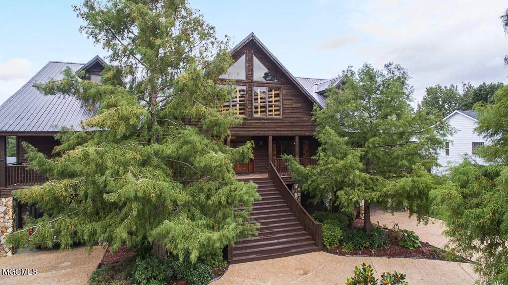 Fantastic waterfront lot on an almost-acre lot. This home is for entertaining with a total of 5000 sqft under roof with covered porches, enclosed shop, inground pool that is screened in, & RV parking with 100 amp service. Double boat dock with 10,000 boat lift, fenced yard, elevator, NEW whole house generator, & entertaining space under the house & upstairs with outdoor kitchen. Living room with soaring cedar ceilings with a wall of windows overlooking the water with bar. Custom kitchen with center island, GE monogram appliances & gas 6 burners with warming oven. Master suite with soaring cedar ceiling, master bath with double sinks, corner tub, walk-in shower with travertine, & HUGE walk-through closet. Loft upstairs overlooking downstairs, two guest rooms on main floor, with guest bat