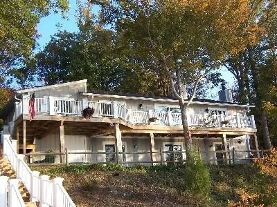 What a view! This gorgeous main lake point lot has a stunning sunset view w/ lots of privacy. Newly renovated in 2006. The lot has an irrigation system & steps going down to the sun-deck on top of a beautiful double boathouse w/ very deep water. New renovations include new kitchen including appliances, eating bar, cabinets & tile floor, new carpet in the bedrooms, mostly new Anderson windows & sliders, new maple hardwood floors, new deck & storage shed. New roof, zoned heat/cool. House is FULLY FURNISHED including deck furniture. Move in ready-just bring your dishes & linens! 3 Bedroom septic permit on file and attached under additional documents. Close to Food Lion.