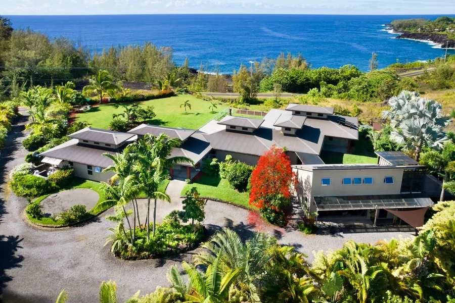 Spectacular ocean and sea cliff views from every room in this custom-designed home which was designed and built in 2008-2009 by a Texas architect-builder to maximize every benefit of its fabulous location. * Custom Koa double entry doors with art gallery foyer. * Great Room which includes dining and entertainment areas leading out to a heated, tiled swimming pool. * Office with two workstations and built-in file drawers. * Bright interior and cool breezes from cathedral ceilings and several clerestories. * Chef's Kitchen has granite counter tops, large island with bar sink, gas range/oven, commercial-sized side-by-side refrigerator/freezer, dishwasher, and trash compactor. * Beautifully-tiled Master Suite with walk-in closet, double-sink vanity, large walk-in shower, and a two-way fireplace. * Guest Suites 1 and 2 each with its own bath, views of gardens and coastline as well as exterior lanai doors. * Guest Suite 2 is an attached "Ohana Suite" with a kitchenette and dishwasher. * Bonus "Loft Studio"is a separate hosted vacation rental with full bath, lanai areas, kitchenette amenities and private spa overlooking the ocean. * Built-in vents in each room to accommodate portable a/c units if desired. * 22,000-gallon underground catchment with irrigation, UV, and double filtration systems. * Owned PV system with solar and electric sources, emergency generator system, and underground wiring to home. * No HOA or Association dues; however, there are recorded covenants for Puna Beach Palisades subdivision. Additional features include a two-car enclosed garage, outdoor Spa overlooking sea cliffs, beautiful landscaping with fruit-producing orchards. Please enjoy the property video (https://vimeopro.com/user19597573/12-7124-kalapana-kapoho-beach-road) showcasing the abundance of custom touches throughout this unique property with FOREVER ocean views!