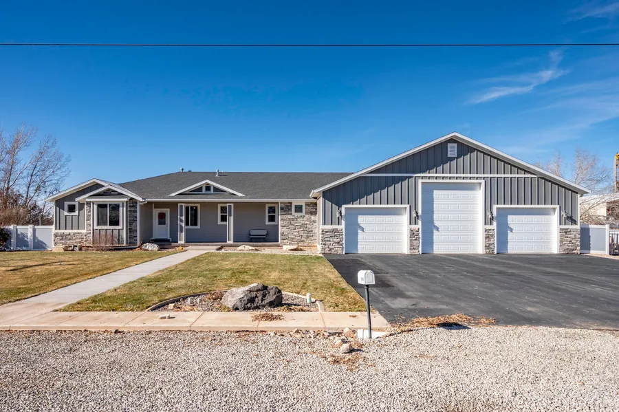 One of a Kind Ranch Style Home Featuring a Gigantic Garage This custom-built home was built in 2017 and sits on a larger .89-acre lot. The lot features a fully fenced yard with Grey and white Vinyl fencing. It is fully landscaped with mature trees, a play area for the kids, a separate garden area, and a large concrete pad for a pool/hot tub/fire pit. The driveway is asphalt. Front & Back Porch with unique colored stamped concrete. Plenty of extra space to park RV, trailers, and equipment, or turn into anything you dream of. Custom Barn Doors. All windows have quality roller shades installed. The kitchen is equipped with custom alder cabinets and granite countertops. Under cabinet accent/night lights. All electrical was done & finished high quality and tons of extra recessed lighting with dimmers installed. Electrical line stubbed in back yard for future shop. The Master has a large sliding door for access to the back patio or hot tub area. Hot tub included with acceptable offer. Features of the home are listed below: * Total living space is 4194 * 6 Bedrooms * Office/Study (or 7th bedroom) * 4 Full Baths * 1 Half Bath * 2 Laundry Rooms * Spacious Pantry * Gym Room in garage (16x20) * Large Storage Room * Concrete cold storage room in basement (very large) * 2 Living Rooms * Perfect sized Dining Area * Gas Fireplace Insert * Large Utility Room * Wood Burning Stove in the basement (woodbox accessible from inside) * 3 Oversized Garage Bays, listed as 4 car garage, however up to 8 vehicles could comfortably be in garage space (total 3102 Sq Ft, including the gym) * Connex container included with acceptable offer.