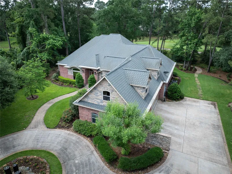 Welcome to sought-after Grogan's Point! This lovely home sits on .88 golf course lot on the 11th tee of Woodlands Country Club West course! It lives like a one-story and has a large flex room upstairs with a full bath. The main level offers open and spacious rooms. Living room boasts high ceilings, fire place, beautiful hardwood flooring and overlooks the enclosed lanai/sunroom! Adjoining is beautifully appointed kitchen with upscale appliances, abundant cabinetry with granite countertops. FYI! Stovetop plumbed for gas where electric oven is now and also in the island. Large paneled study/library with glassed privacy doors! Lovely primary suite with jacuzzi, spacious shower, very generous wardrobe space, overlooking private courtyard with specialty lighting, fountain. Beautiful mature landscaping with year-round blooming trees and shrubs. You will love the privacy and view of the golf co...