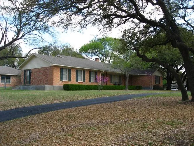 3BR/3BA all brick one level home. 2 car side entry garage, plus front circular drive. Almost 1 acre Beautifully wooded lot. Large Oaks, Elms, Texas Redbuds. 38 Ft long front porch with inviting scenic view of Historic farm and lovely sunsets. Features formal living room, family room with fireplace, and a 20 X 40 enclosed garden room. Galley kitchen looks into family room. Large workshop with double sink and floor to ceiling shelving. Bonus room has private entrance from Lowrey Street and would make a perfect 4th bedroom or office. Owner financing available with $20,000.00 down.