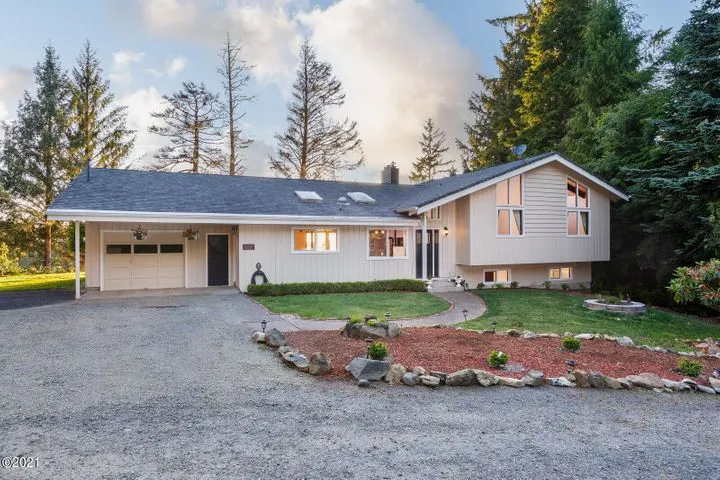 Tucked in the sought after neighborhood of Waldport Heights featuring 4 bedrooms 3 bathrooms with 2320 sq ft. This contemporary style home has beautiful vaulted beam ceilings, large windows, open concept floor plan and a large yard for your enjoyment. Captivating panoramic views of the Alsea Bay, Pacific Ocean, Waldport bridge, and dazzling City lights at night. Surrounded by lush forests, nature, and situated on a private drive affording extra privacy. Centrally located on the Oregon coast and close to shops, fishing, crabbing, clamming, hiking, beach access and more! If you enjoy nature and being close to the ocean, this is the home for you! High up out of the tsunami zone you will find this hideaway within arms reach of town waiting for you to create memories that will last a lifetime.