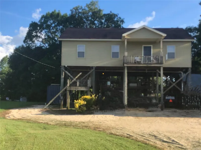 Are you looking for life on the beautiful Alabama River? Look no further! This waterfront home has 2 bedrooms, 2 full baths and built in double bunks.It has nice open concept living/dining/kitchen area. The kitchen has granite countertops, stainless appliances and a nice size island for preparing and entertaining. The living room has vaulted ceilings with carpet inlay surrounded by wood. French doors open to water views and lots of deck area for family and friends. Also has nice covered patio at the waters edge for bigger views. Dock and huge master walk-in shower with rain head are currently under renovation but will be completed for new owner. The exterior of the home is hardie board with vinyl/metal eaves and soffit meaning low maintenance. Detached storage up against home remains along with most appliances. Motivated sellers so come and see this River treasure today!