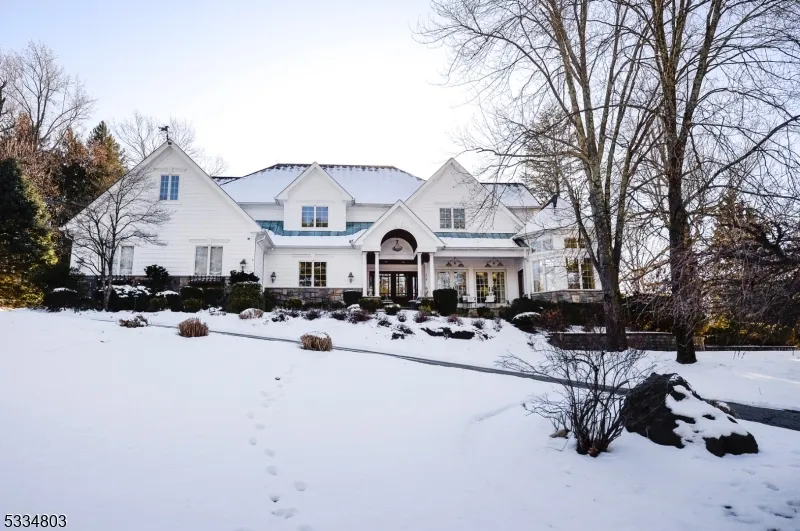 Charm and class describes this special Franklin Lakes Gem. A welcoming front porch leads you to a dramatic two-story entry foyer with Radiant heat. Banquet size, formal dining room, formal living room opens to the sunroom both have Radiant heat as well. Dramatic great room with floor to ceiling stone fireplace, wet bar, cathedral ceiling with French doors to lush backyard. Spacious kitchen with Center Island, snack bar, upscale appliances with a beautiful room and another Fireplace leading to covered backyard living area. Features include a wood-burning stone fireplace and built-in barbecue grill. Large master bedroom suite with Fireplace, extra large walk-in closet and master bath. Separate living area has full bath, bedroom, office, sitting room and library, great space for home office or separate apartment. 9 zone gas hot water baseboard heat, 4 Zone central air, sprinkler system, pub...