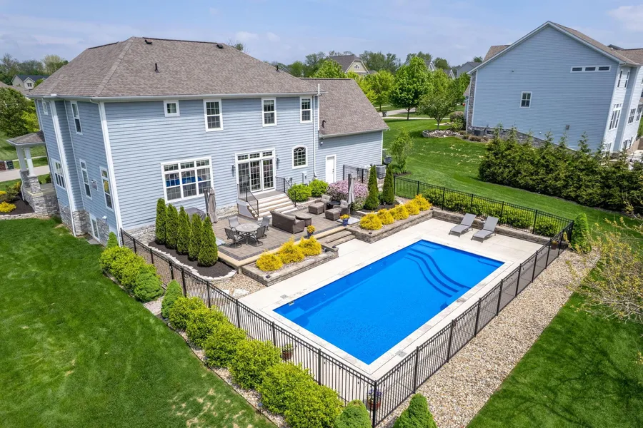 Rare Find in Olentangy Falls! Nestled on a private, nearly one-acre wooded lot, this custom-built home in the prestigious Olentangy School District offers an outdoor paradise. The sparkling heated in-ground pool, inviting patio and picturesque landscaping that includes a serene wooded reserve creates an outdoor oasis perfect for relaxing or entertaining. This stunning home offers the perfect blend of elegance, comfort, and everyday convenience. Meticulously maintained, it boasts 4 bedrooms and 4.5 bathrooms offering ample space and luxury complete with a 4 car garage with epoxy floors. Step inside to find stunning custom millwork and beautiful tray ceilings throughout. The home features plantation shutters, warm hardwood floors, and new paint creating a fresh and inviting atmosphere. Natural light floods the spacious rooms. The primary suite includes a vast bedroom, breathtaking 9x24 custom-designed closet, and a luxurious ensuite bathroom with an oversized soaking tub. Upstairs find three more generously sized bedrooms with custom closets, two full bathrooms, and a laundry room. Enjoy the flowing open concept living with the chef's kitchen that features custom cabinets, granite countertops, a walk-in pantry, gas range, double ovens and beverage fridge. The high end finishes found in the great room, formal dining area, and main-level home office, along with a mudroom that includes a built-in dog wash add character and convenience. The finished basement provides endless possibilities and includes a third fireplace, fourth full bathroom, rough-ins for a wet bar, and ample extra living space. Stay active in the in-home gym or relax by one of the three cozy fireplaces. With storage galore and outdoor lighting, this home is designed for comfort and elegance. Don't miss this exceptional property in Olentangy Falls! Schedule a private showing and make this dream home yours.