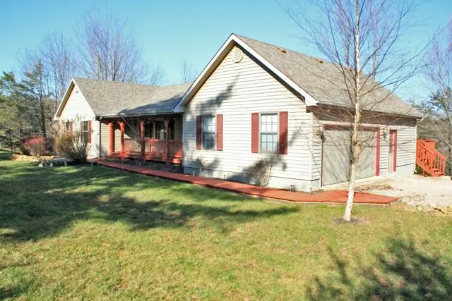 (SOLD - April 2013) After just a short and level walk from the golf course down Osage Lane, you'll come upon this like-new and easy-flow ranch home on two lots. There's so much to love outside, with a classic covered front porch, two-plus car garage with service door, 12x40 rear deck, tall trees, newer dimensional roofing, and fresh stain to enhance the mature landscaping and other updates. Step inside to admire the soaring cathedral ceiling above the focal point fireplace, and on through to the open dining area and kitchen featuring breakfast bar island. Off the kitchen is quick entry to & from the garage through the large laundry room with its double-door storage closet and deep pantry. Down the hall on the other side of the great room are three large bedrooms, including a spacious master suite with walk-in closet. All bedroom closets are lighted, as well as the hall coat closet which includes control of the energy-efficient whole-house fan. You'll also appreciate the fresh paint and new carpeting, too! Hide-A-Way Hills Club members enjoy boating and fishing lakes, beach and pool, golf and tennis, lodge and restaurant (with craft brewery), ATV trails and stables, playground and park areas, airstrip (grass), and more!